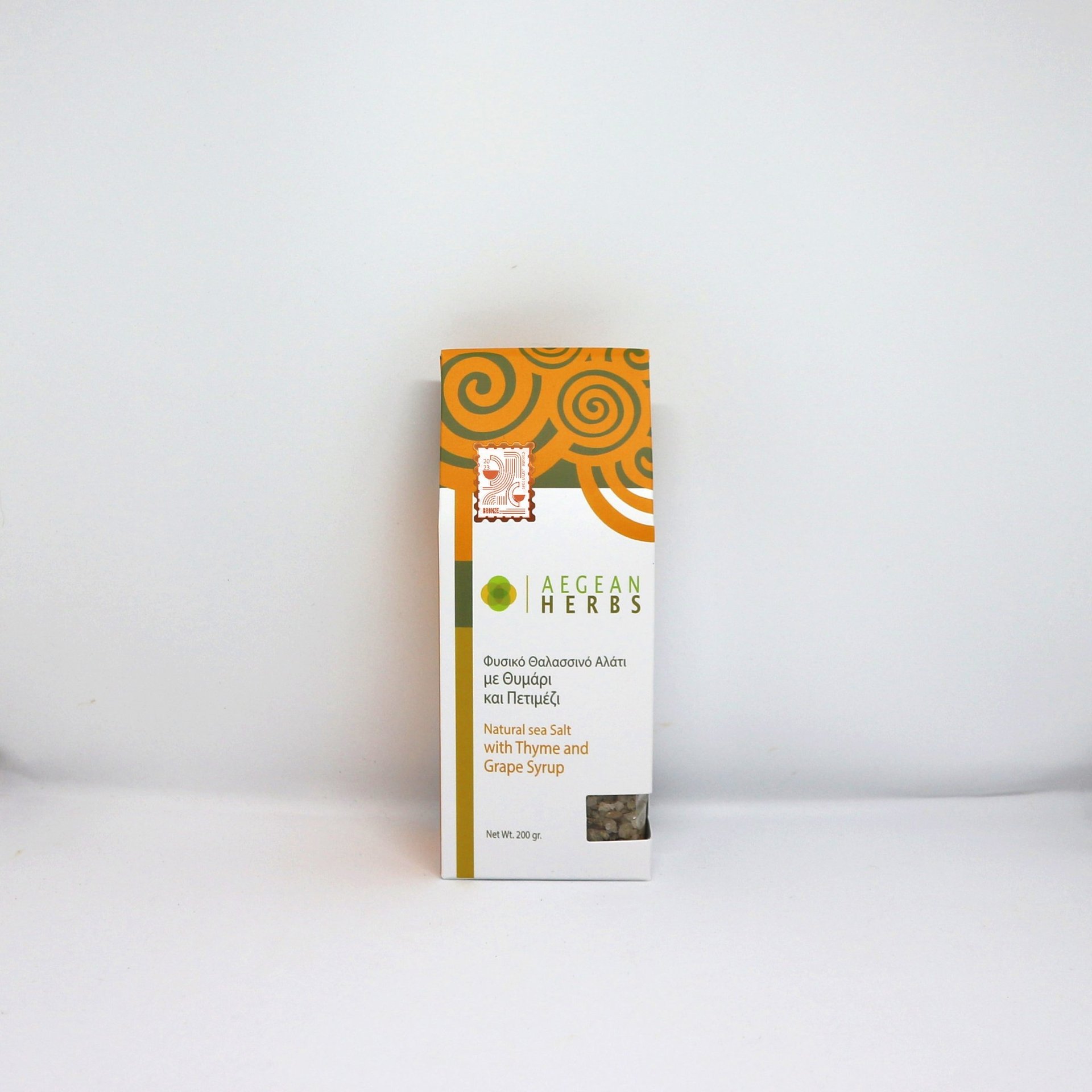 Natural sea salt, harvested from natural salt pans, flavored with thyme from Lemnos and fragrant grape syrup from Crete. Excellent for meat marinades, chicken dishes and soups.